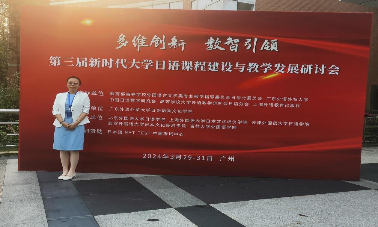 2024年3月29日-31日, 成人有声小说 教师吴娱受邀参加了第三届新时代大学日语课程建设与教学发展研讨会。来自全国的150余位专家学者及高校教师围绕本次大会主题“多维创新 数智引领”进行探讨,力求推进大学日语课程建设与高质量发展,构建数字化、网络化、智能化的大学日语教学新生态。