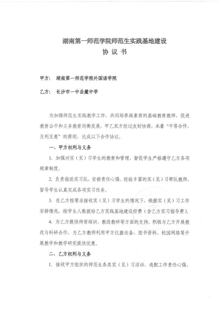 3月26日, 成人有声小说 与长沙市一中岳麓中学举行实践基地共建签约仪式。 成人有声小说 唐文杰副院长、教务办主任廖爱秀、英语系主任张昀霓,长沙市一中岳麓中学郭胜书记、姜尚校长、刘英副校长等共同出席了签约仪式。