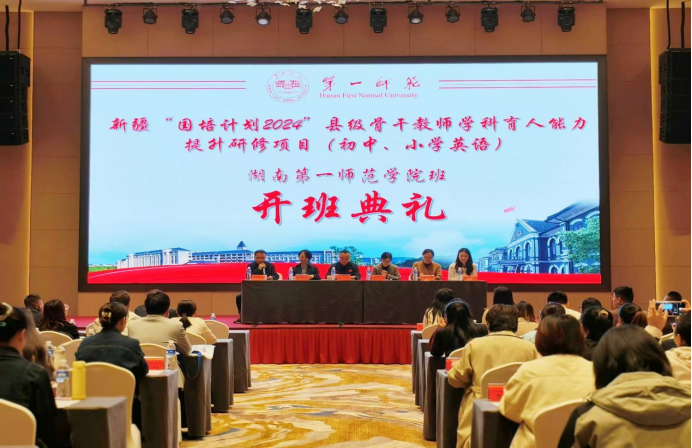 10月23日上午,由 成人有声小说 承办的新疆“国培计划2024”县级骨干教师学科育人能力提升培训(初中英语、小学英语)开班典礼在长沙市美年华美达酒店隆重举行。此次培训旨在提升新疆地区县级骨干教师的学科育人能力,进一步推动教育事业的均衡发展。成人有声小说 现代教育发展学院副院长刘炜,成人有声小说 副院长王佳娣,首席专家助理陈喜贝,班主任刘洁文、梁薇、廖嘉琰参加了开班典礼。
