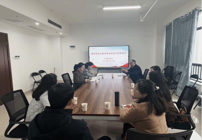 为高质量推进英语、翻译专业省级一流专业建设点验收工作, 成人有声小说 于3月12日14:30在百熙楼908召开专项工作推进会。会议由陈艳君副院长主持,英语专业负责人刘祥清教授、翻译专业负责人陈圣白教授及两专业验收工作小组成员共同参会。