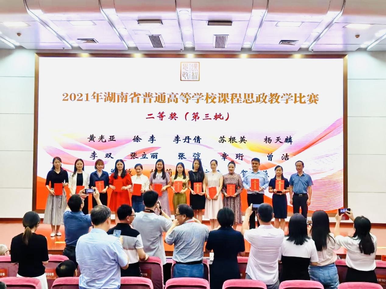 本次比赛由湖南省教育厅主办,全省101个外语类作品参加省级复赛,英语专业组仅18个作品进入省级决赛。决赛采取现场抽题的形式,比赛选手在90分钟内针对抽中题材进行教学设计,并完成PPT制作。现场决赛时间为20分钟,选手向专家评委展示教学思路和设计(10分钟),演示教学片段(5分钟)并回答专家问题(5分钟)。英语专业组最终评选出一等奖3名、二等奖6名、三等奖9名。