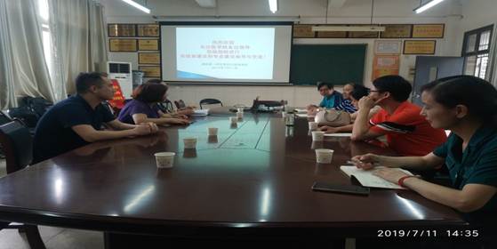 2019年7月11日,长沙医学院成人有声小说 傅院长、王教授和资产管理处肖处长一行来 成人有声小说 调研专业实验室建设和英语专业建设。 成人有声小说 刘祥清院长、邓于祁副院长、康响英副院长、教研室主任张昀霓老师、陈钰老师和实验室陈阳老师参加了交流。