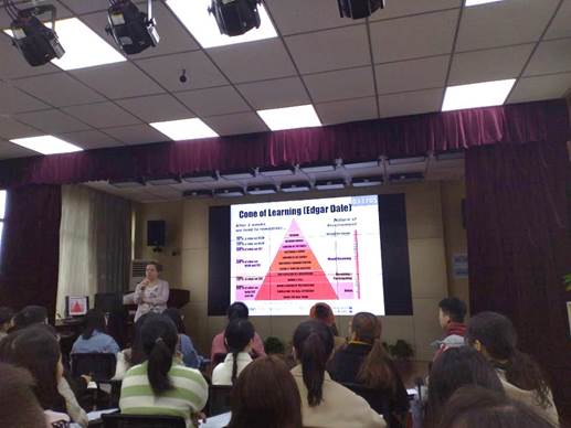 2019年11月18日下午,美国大使馆下属项目ELF(English Fellow Program)组织的讲座在 成人有声小说 怀中楼北605教室成功开讲,来自华中师范大学的外籍教师Heidi Heily作了一场题为:“Getting students moving: active learning”内容精彩、形式生动活泼的讲座。成人有声小说 国际交流处何晓斓处长、成人有声小说 刘宇松副院长、国际交流处刘畅立老师及成人有声小说 的部分师生聆听了本次讲座。
