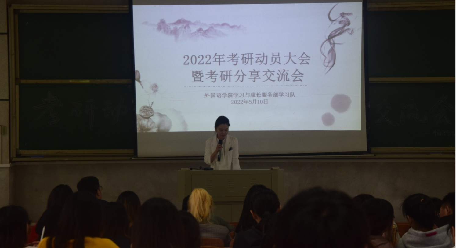 为了进一步提高学生的考研热情,明确考研目标,掌握相关考研目标,了解更多考研信息,成人有声小说 于5月10日下午在怀中楼南栋208教室举办2022年考研动员大会暨考研分享交流会。成人有声小说 党委书记刘祥清、副院长陈圣白(主持行政工作)、党委副书记禹晗以及辅导员毛浩蓉出席会议,成人有声小说 19级100余名学生参与听会。18级780班周良雯、18英语6班李妍、18英语4班蒋慧平三位今年考研成功被录取的学生作为特邀嘉宾也亲临现场进行经验分享。