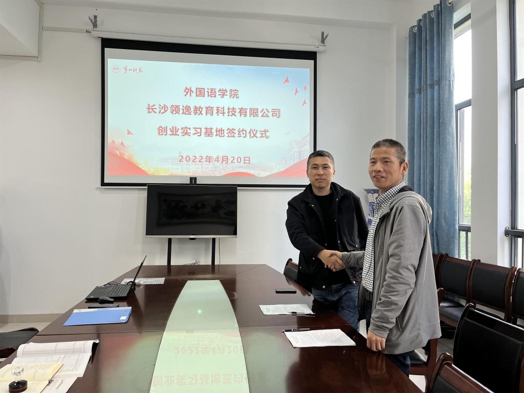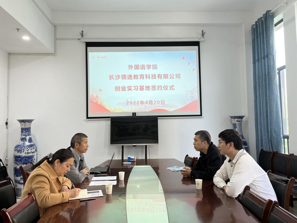 为进一步强化实践教学环节,提高英语非师范专业人才培养质量,深化产教融合,为企业输送高素质的人才,实现专业与产业、企业和岗位对接,4月20日上午, 成人有声小说 与长沙领逸教育科技有限公司“创业实习基地”签约仪式在百熙楼223举行。成人有声小说 刘宇松副院长、长沙领逸教育科技有限公司王龙副总等人出席了仪式。
