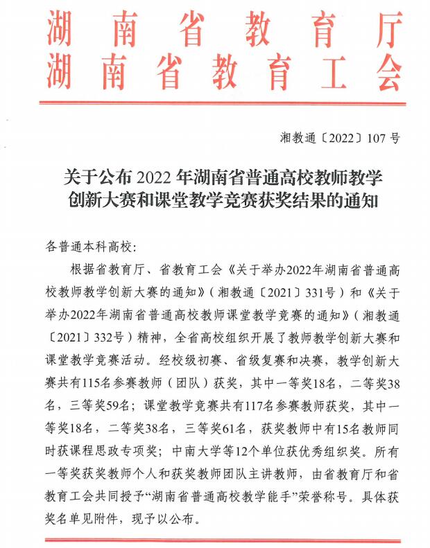 湖南省高校教师课堂教学竞赛由教育厅和湖南省教育工会主办,湖南省教育科学研究院和中南大学承办,分校级初赛、省级复赛和决赛三个阶段。全省52所普通高校(含独立学院)共推荐150名教师参加课堂教学竞赛复赛。