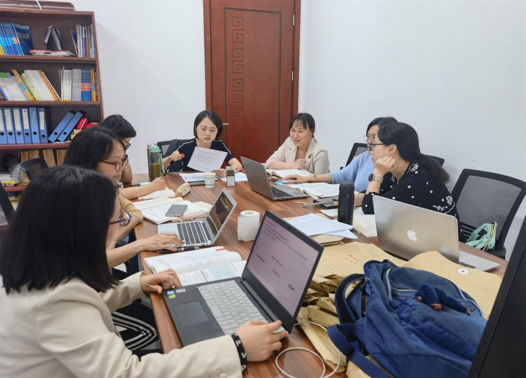 本次会议中陈喜贝老师以《新时代明德大学英语》第一册Unit 6 为例,深度解读文本,并且基于文本设计了整个单元的教学实施步骤以及课程思政的实施过程,喜贝老师结合以学生为中心、以学习为中心的教育理念,将课程思政内容巧妙的与语言知识融合在一起,整个教学设计中教学内容逻辑清楚、教学任务形式多样、教学环节主线突出环环相扣。基于喜贝老师的样章分享,团队老师展开了热烈的讨论,通过交流,大家一致赞同陈老师高超的文本解读能力以及课程思政巧妙的融合能力。同时对于案例中存在的难点问题大家也积极讨论并各个击破的想出解决办法。