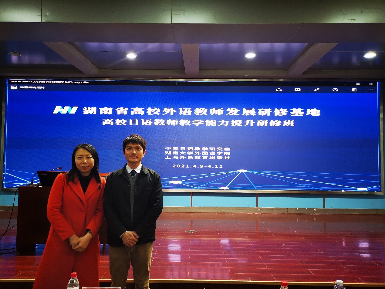 2021年4月10日-4月11日,成人有声小说 教师吴娱、刘锐在学院领导大力支持下参加了在湖南大学举办的湖南省高校外语教师发展研修基地第八期研修班暨西南地区高校日语教师教学能力研修班。4月10日上午中国日语教学研究会会长北京外国语大学周异夫教授发表了“新文科背景下的日语专业课程改革与建设”的主旨报告,湖南大学成人有声小说 副院长张佩霞教授做了“思政融入-《指南》指导下的日语专业核心课程教学设计”的报告,上海外国语大学日本文化经济学院院长高洁教授做了“线上线下混合式教学设计与实践”的主旨发言,四川外国语大学日语学院院长黄芳教授介绍了“双万计划”背景下日语一流专业建设——日语基础阶段课程《综合日语》教学创新经验。下午来自湖南不同高校的教师上了各类课型的日语示范课。4月11日上午教学工作坊,吴娱老师参与了日语精读工作坊的集体备课活动,她提出:论语的思想在日本企业界非常受欢迎,日本企业经营之神稻盛和夫深受论语的影响,创办了两个全球五百强企业。中国优秀传统文化让全世界受益。日本文化环节可以使用线上插花的方式增加学生对美的感受力和鉴赏力,培养学生热爱生活,进行隐形思政教育,被湖南日语专业委员会副会长胡俊副教授高度评价。上海成人有声小说 高洁教授对小组说课进行了点评,并提出中肯可行的意见。刘锐老师参加了日语会话组工作坊,并作为小组代表进行了说课,他向全场与会老师宣传了成人有声小说 的基本情况,将示范课所学知识运用到课堂上,并用大学生应该警惕电话诈骗的实例在会话教学中融入了思政元素。会后,课程组就大学日语思政课程建设与中国日语教学研究会会长周异夫教授进行了交流。