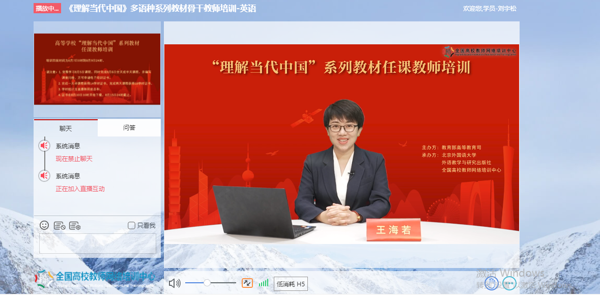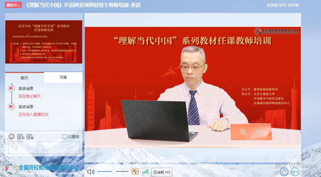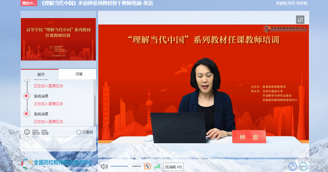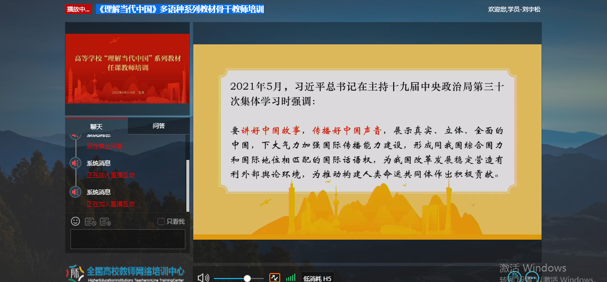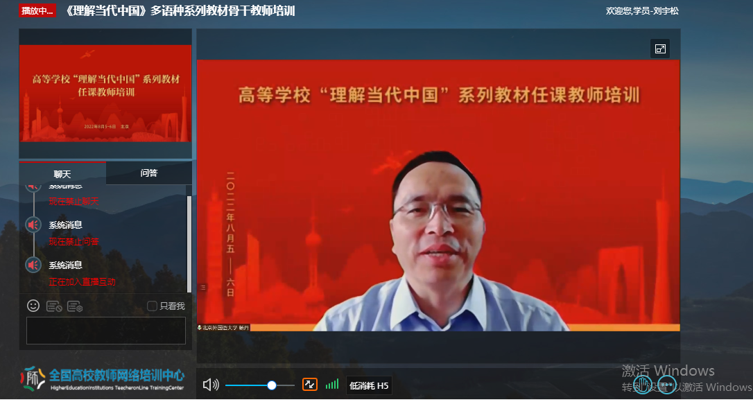 为深入贯彻《习近平谈治国理政》多语种版本进高校进教材进课堂(以下简称“三进”)工作精神,2022年8月5日至6日, 成人有声小说 全体院领导、专业负责人、系(教研室)主任、读写组、翻译课程组、二外课程组、综合英语课程组课程负责人及成员20余人参加了由教育部高等教育司组织、北京外国语大学、外语教学与研究出版社、全国高校教师网络培训中心共同承办的“理解当代中国”多语种系列教材任课教师线上培训。