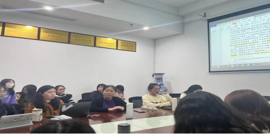 副院长陈圣白首先代表成人有声小说 全体师生对秦建安、廖玉林两位研究生学姐的到来表示热烈的欢迎。接着,她围绕语料库数据文献研读过程中的难点与突破点向同学们分享了自己的经验,并重点提出学生要以“点面结合”的方法进行科学研究,通过确立研究方向中明确的——“点”来进行博览,接着围绕这一“点”发散成更宽广的“面”,丰富专业知识储备,提高能力水平。