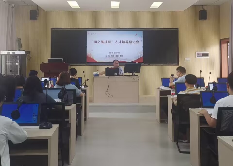 2023年6月14日下午, 成人有声小说 在怀中楼602召开了“润之英才班”人才培养研讨会。成人有声小说 书记刘祥清、副院长(主持工作)陈圣白、副院长唐文杰、副书记戴建宇、院长助理王佳娣、英语系系主任张昀霓、教师代表胡启海等人及“润之英才班”全体学生参加此次研讨会。会议由戴建宇主持。