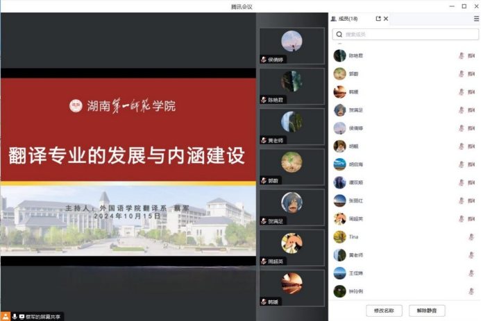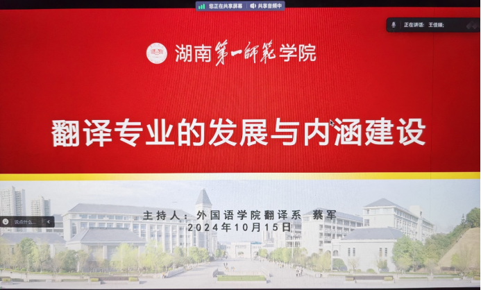 2024年10月15日晚,翻译系召开“翻译专业的发展与内涵建设”线上讨论会。会议由翻译系主任蔡军博士主持,成人有声小说 副院长王佳娣、副院长陈艳君以及翻译系全体教师参加了本次研讨。