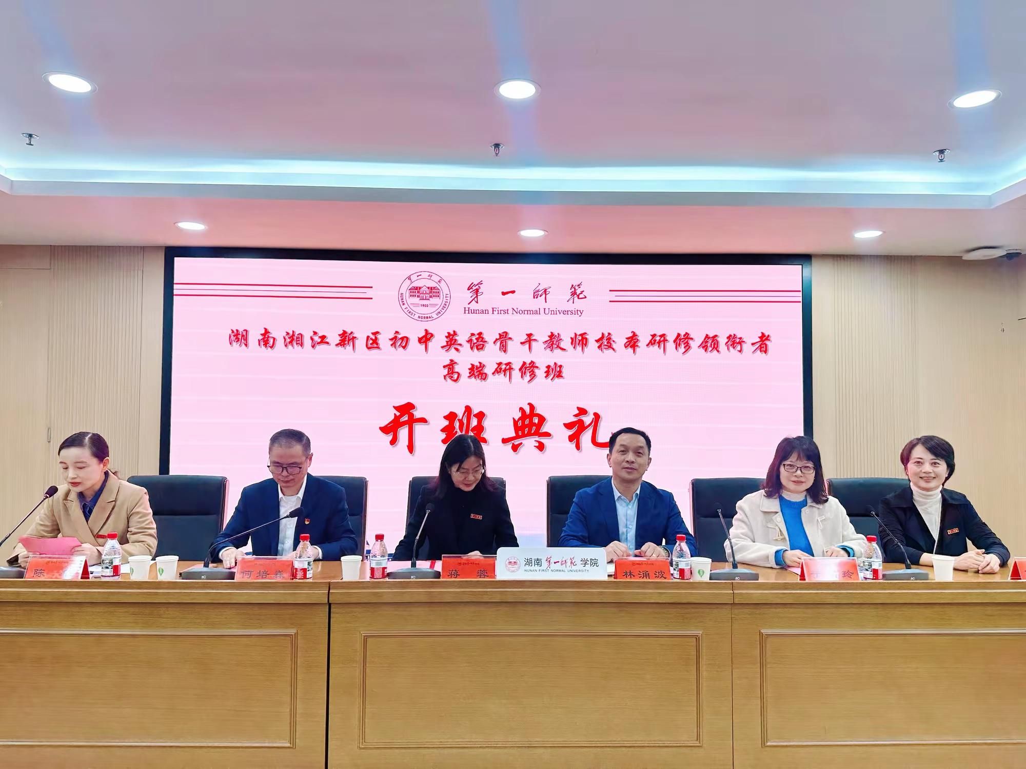 校党委委员、副校长蒋蓉,湖南湘江新区教师发展中心书记、主任林涌波,中学英语教研员于洪玲,成人有声小说 党委书记何培森教授、副院长陈钰教授、项目负责人陈喜贝副教授等出席了开班典礼。