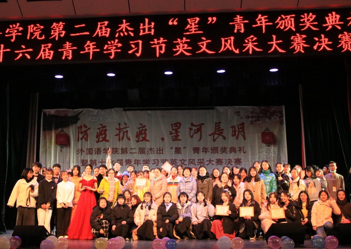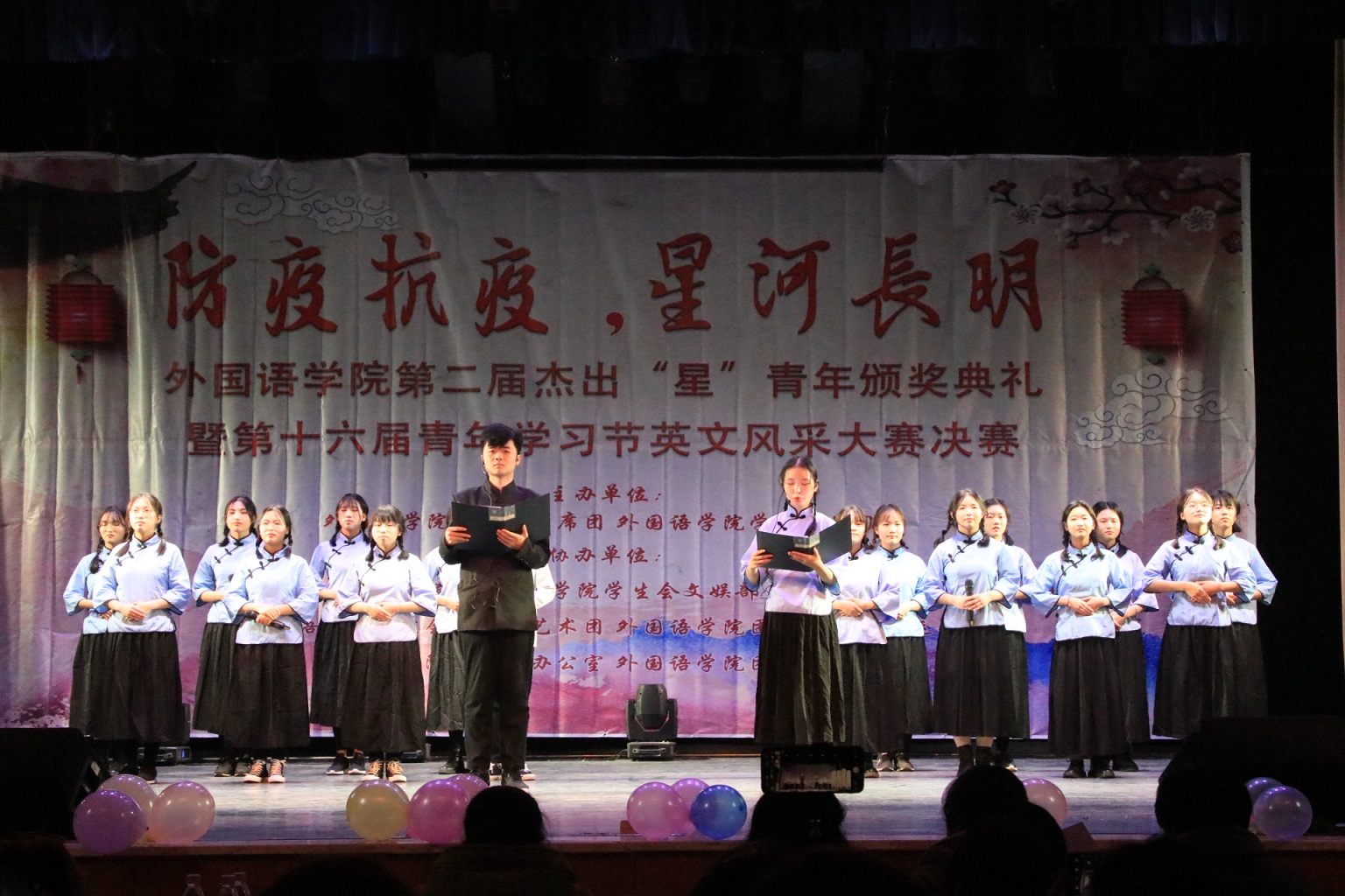 最终,在英语演讲比赛中,20英语1班邵海茗取得一等奖,18英语2班谢静文、19英语4班吴艺薇赢得二等奖,19英语1班言灵、19级810英语班陈笑取得三等奖;英语歌曲比赛中,《Light a fire 》荣获一等奖,《There's nothing holding me back》荣获二等奖,《The End of the World》和《Love Story》荣获三等奖;英语舞台剧表演中,19级813班廖丽组织的《The inheritance and transformation of love》荣获一等奖,20级841班表演的《LA LA LAND》荣获二等奖,20英语1班表演的《家有儿女2.0》以及19级810班表演的《The inheritance and transformation of love》荣获三等奖;毛泽东诗词朗诵中,20英语4班荣获一等奖,18英语5班荣获二等奖,20英语5班和19翻译1班荣获三等奖。最后,由评委老师为获奖者颁奖。