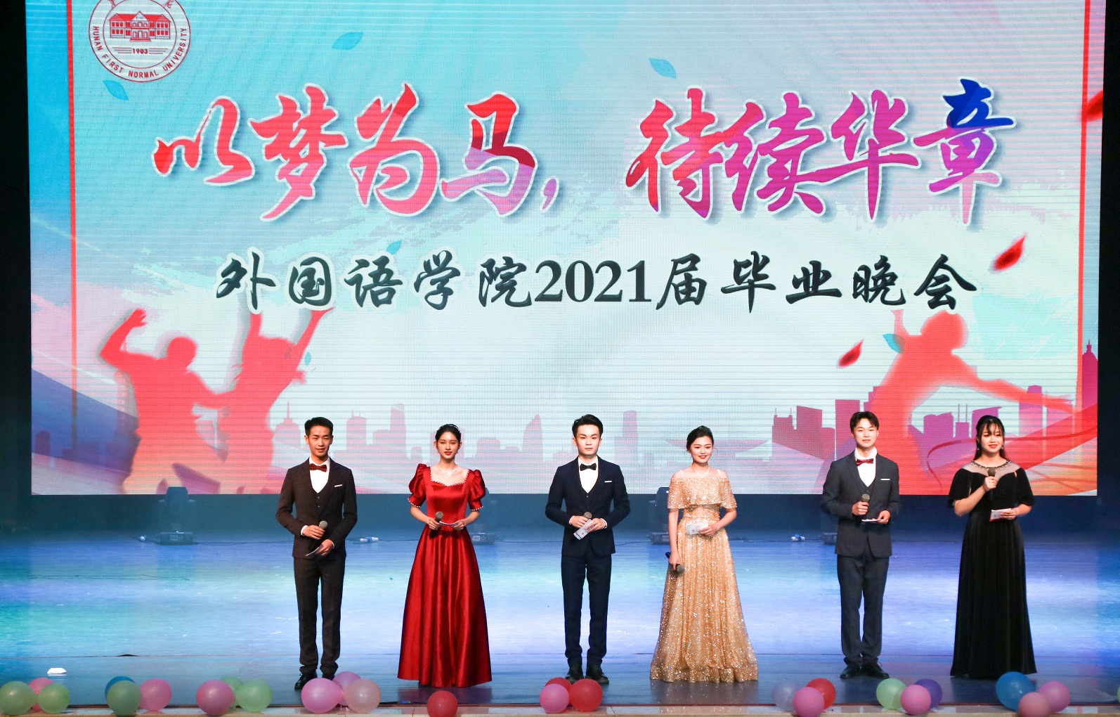 6月7日晚,成人有声小说 2021届毕业典礼暨“以梦为马,待续华章”毕业晚会在田汉剧场举行。校友会秘书长邓朝晖、办公室主任廖跃华出席活动,并与成人有声小说 全体党政领导及1000余名师生代表一起观看了晚会。