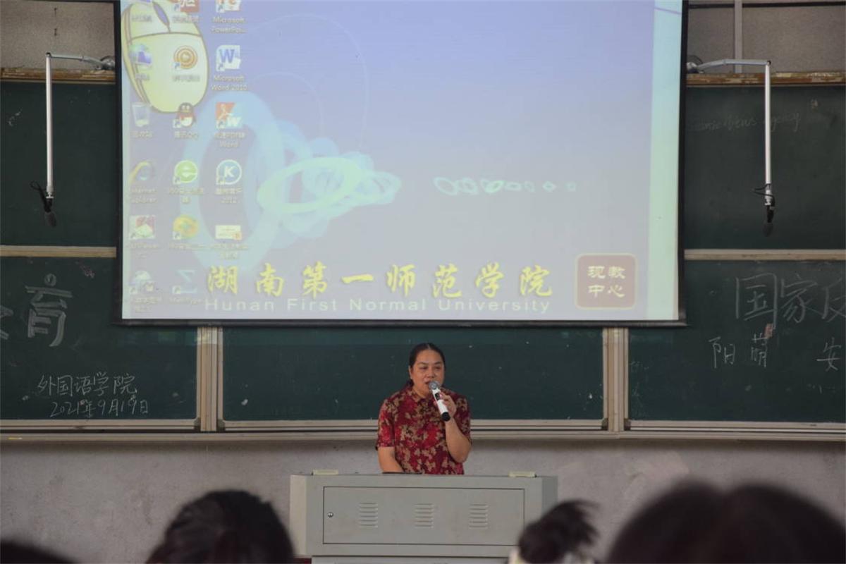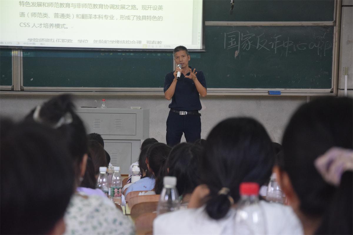 上午11时30分,教科办廖爱秀老师就实践教学、学科竞赛、四六级考试、专四专八考试、普通话考试、教资考试、毕业论文等做了详细讲解。