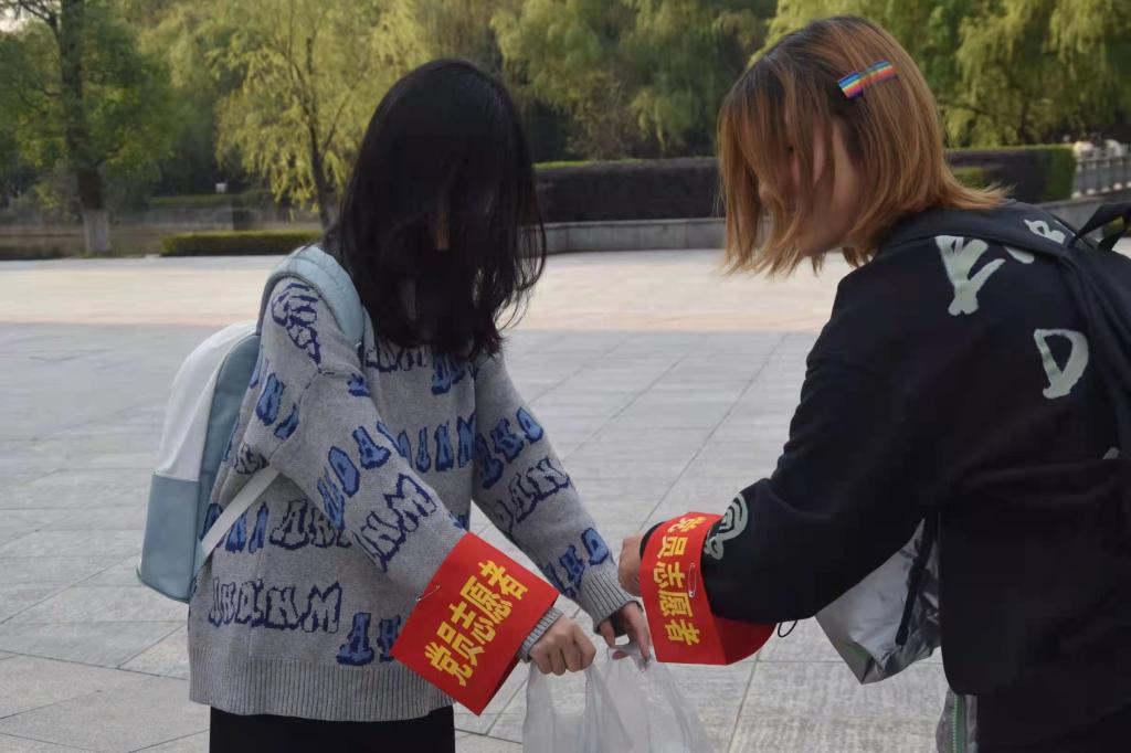 紧接着,在党员志愿者们的引领下,同学们反响热烈、纷纷加入“校园清洁小队”,积极配合、不辞辛苦地拾起广场上、宿舍楼旁、草堆里的每一个垃圾,在欢声笑语中此次活动也圆满结束。
