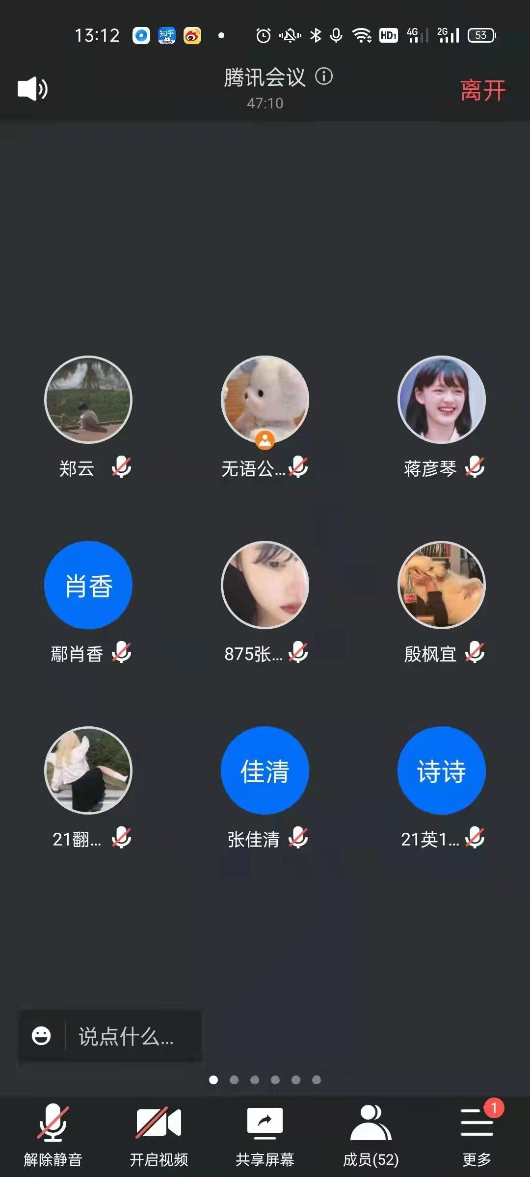 12日中午,在辅导员老师的指导下,青年志愿者协会全体成员及50多名党员志愿者们在线上观看并讨论了全国两会精神宣讲的视频。在观看途中,全体志愿者们严肃认真、聚精会神,并对重要精神内涵记下了满满的笔记。而在线上学习的最后讨论阶段,志愿者们踊跃发言,在线上会议室的对话框里发出一段段或引人深思或深入人心的感悟,纷纷表示将进一步增强自身的使命意识和责任意识,不忘入党初心,把思想和行动统一到两会精神上来,真正做到“为人民服务”的宗旨。