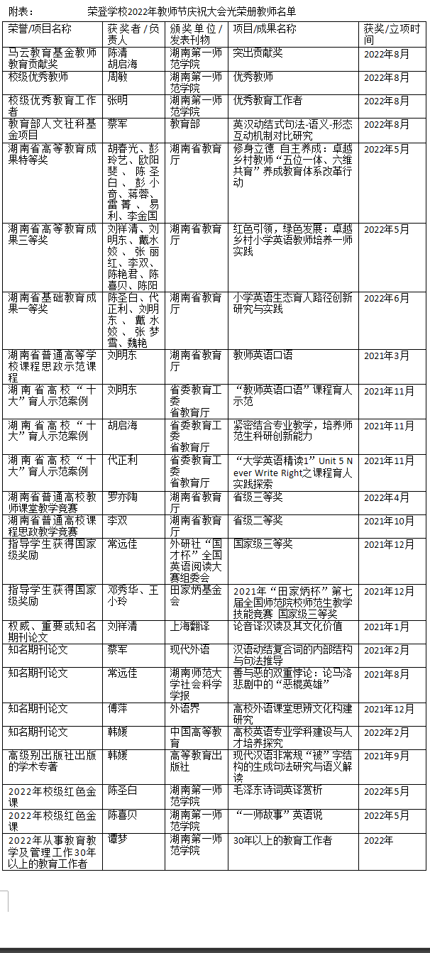 9月9日上午, 成人有声小说 在东方红校区田汉剧场举行了以“迎接党的二十大,培根铸魂育新人”为主题的2022年教师节庆祝暨表彰大会。 成人有声小说 陈清教授、胡启海教授等多位教师获得成人有声小说 表彰,全院教师有38人次荣登成人有声小说 2022年教师节庆祝大会光荣册。学院学工办主任张明老师作为优秀教育工作者获奖代表发言。