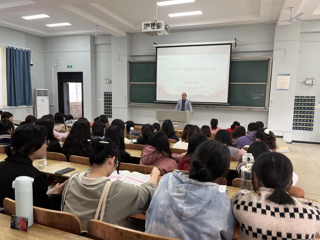 2022年10月10日下午,成人有声小说 2020级六年制师范生教育实习动员大会在怀中南209召开。学院唐文杰副院长、教务办主任廖爱秀老师、辅导员马红芳老师、全体实习指导老师及成人有声小说 2020级六年制全体师范生参加了此次教育实习动员大会。