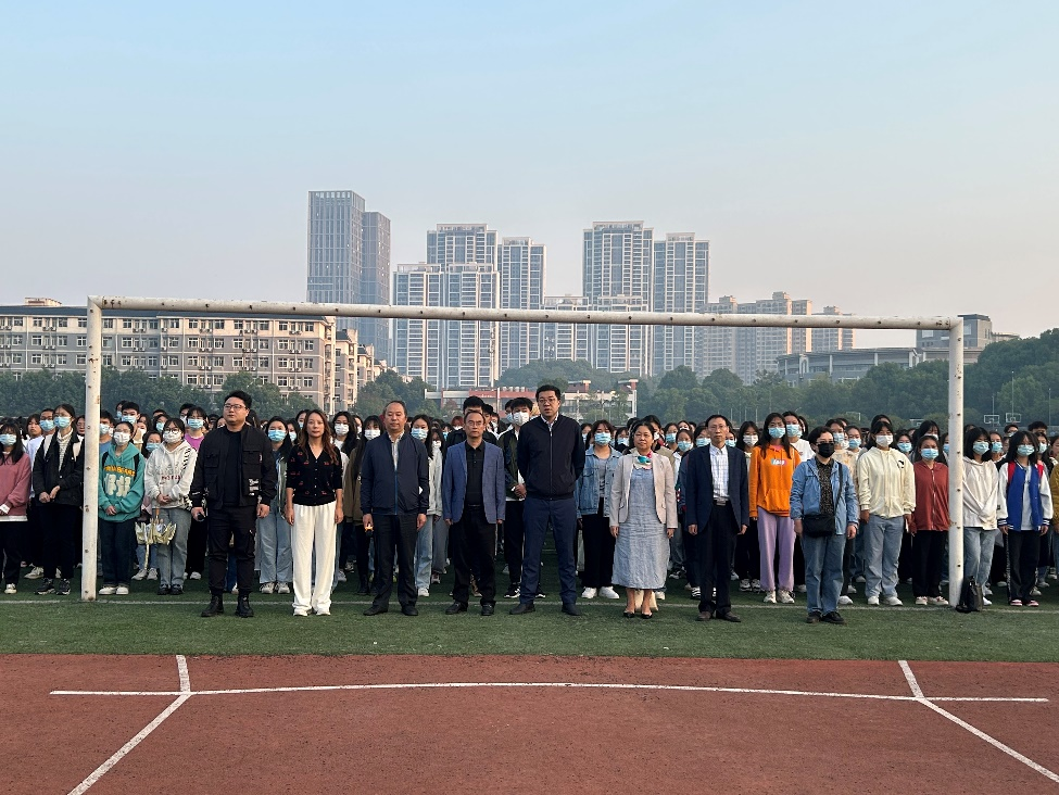 10月17日早上七时,成人有声小说 在田径场代表成人有声小说 隆重举行升旗仪式。学院党委书记刘祥清、党委副书记禹晗、副院长唐文杰和康响英 、全体辅导员、党员教师代表胡启海教授以及2022级全体学生参加了此次升旗仪式。此次升旗仪式在中国共产党第二十次全国代表大会胜利召开的第二天举行,因而特殊而又庄重。
