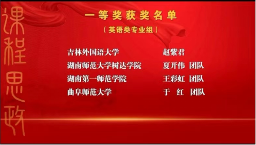 11月25至27日,2022年外语课程思政优秀教学案例全国交流活动如期在云端举行。通过层层严格选拔,最终来自全国各地高校的26个教师团队进行了决赛的激烈角逐。 成人有声小说 成人有声小说 王彩虹、陈圣白、周敏、陈清、刘霞团队荣获外语类英语专业组全国一等奖,这是成人有声小说 继2021年全国外语课程思政比赛后再创佳绩。