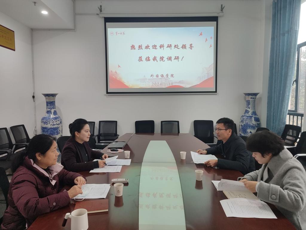 2024年1月10日上午,科研处处长肖攀、副处长罗燕一行来到 成人有声小说 调研,陈圣白副院长(主持工作)、康响英副院长参加了本次调研工作会议。
