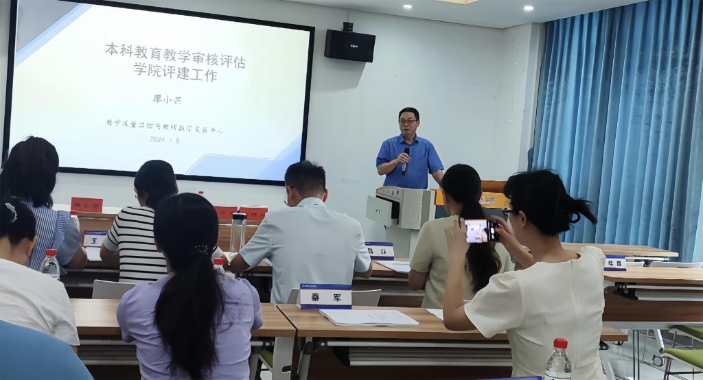 教学质量监控与教师教学发展中心主任廖小芒教授就本科教育教学审核评估学院评建工作做专题辅导。廖小芒介绍了什么是本科教育教学审核评估、新一轮审核评估的工作目标和五大原则、本科教育教学审核评估的内容,解读了评估指标体系的七个指标,分析了需要重点审核的七个项目,阐释了审核评估的相关材料和核心任务,总结了审核评估的工作要求,并勉励大家以审核评估为契机,深化本科教育教学改革,从而全面推进成人有声小说 和学院高质量内涵发展、特色发展、创新发展。