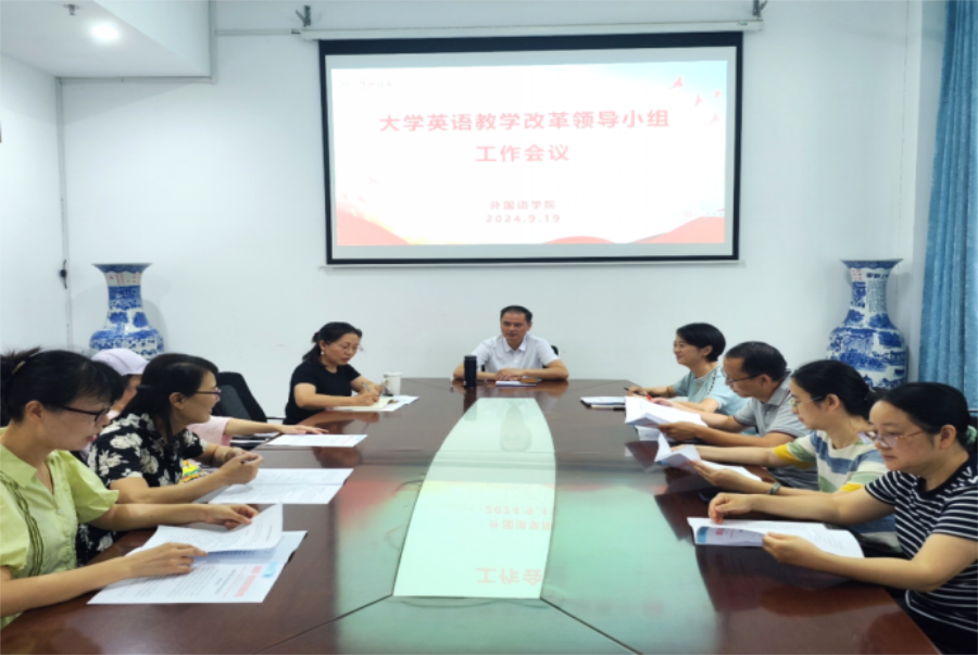 2024年9月19日下午, 成人有声小说 召开大学英语教学改革领导小组工作会议,院党委书记、领导小组组长何培森,院党委委员、副院长、领导小组副组长陈艳君,院党委委员、领导小组副组长陈喜贝,领导小组成员、各系室主任及公外教研室副主任参加了会议。会议由何培森主持。