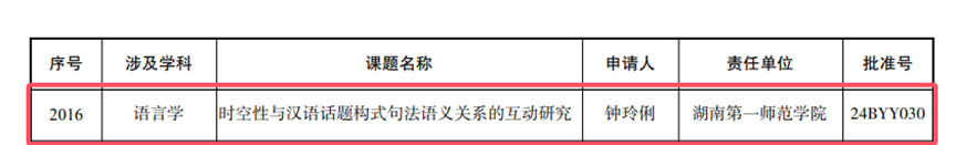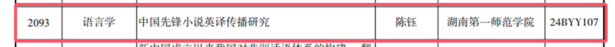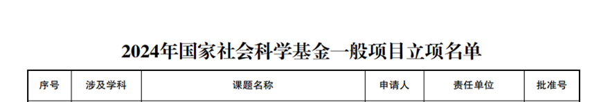 近日,2024年国家社会科学基金年度项目立项结果公布, 成人有声小说 陈钰博士的项目“中国先锋小说英译传播研究”(24BYY107)和钟玲俐博士的项目“时空性与汉语话题构式句法语义关系的互动研究”(24BYY030)获得一般项目立项,这是 成人有声小说 自2022年以来连续第三年立项国家社会科学基金项目。