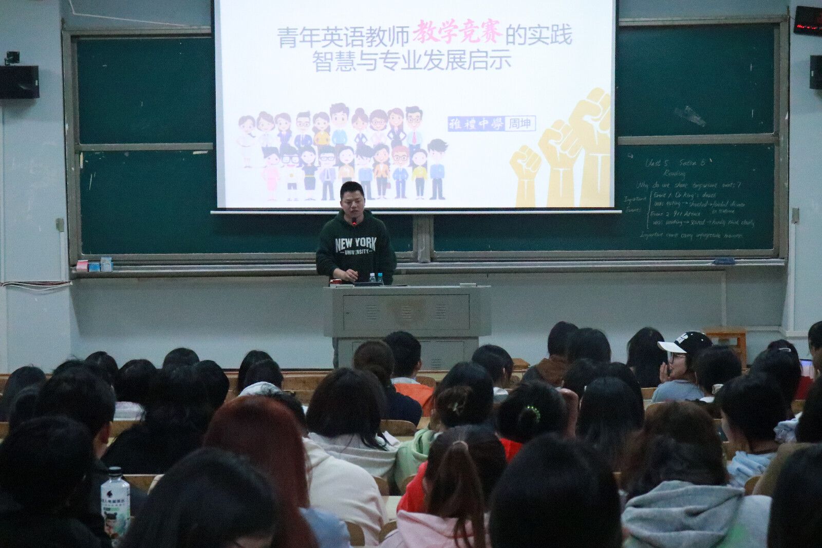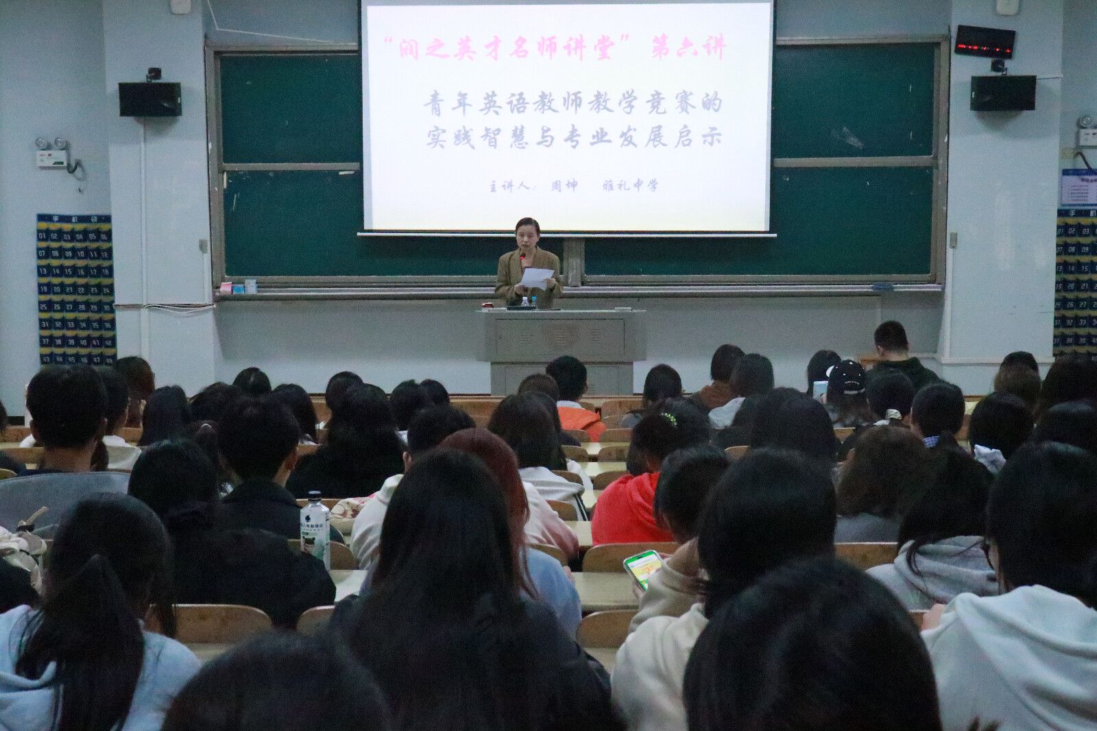 为提升师范生教学竞赛能力与专业发展视野,2025年10月28日晚,成人有声小说 在怀中南109教室,聚焦“青年英语教师教学竞赛的实践智慧与专业发展启示”这一主题,成功举办“润之英才名师讲堂”第六讲。本次讲座由成人有声小说 副院长陈钰主持,特邀湖南省名师竞赛专家、雅礼中学周坤老师担任主讲。 成人有声小说 24级全体师范班学生到场聆听。