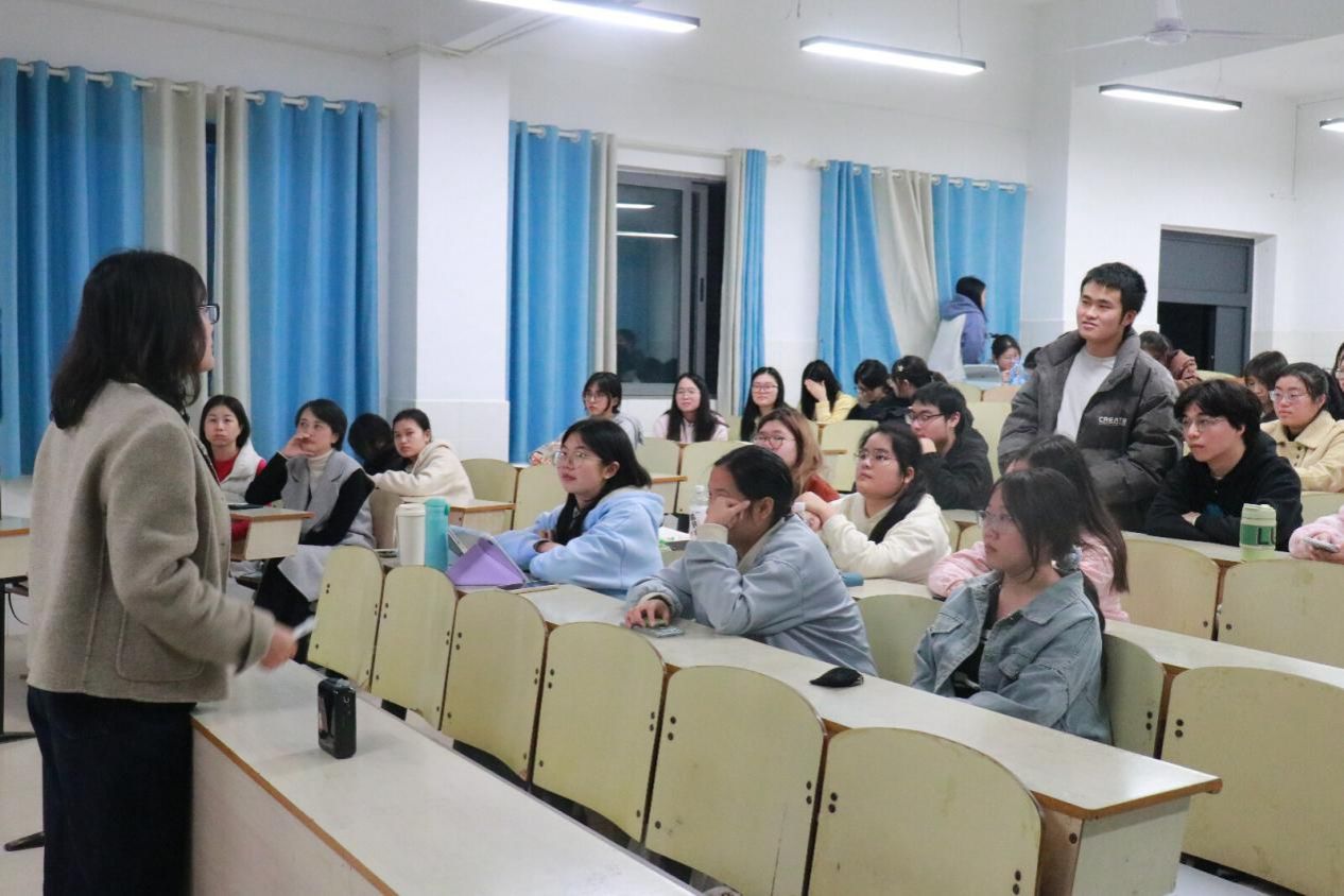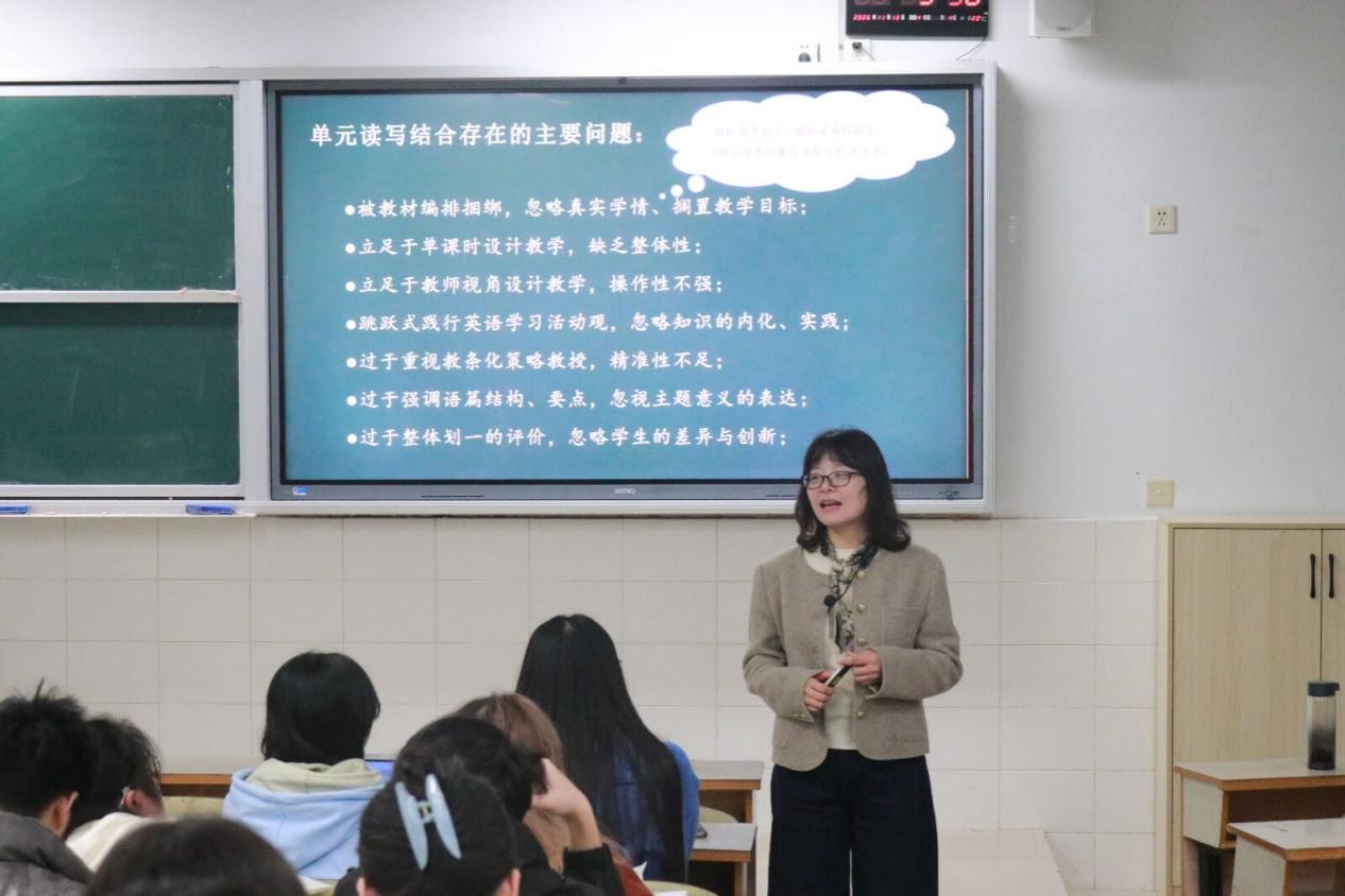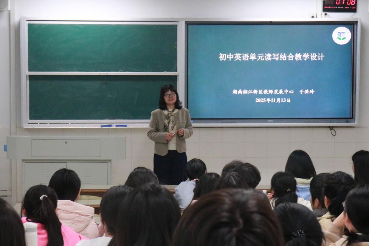为提升师范生英语教学设计与实践能力,11月13日晚7点, 成人有声小说 “润之英才名师讲堂”第七讲在东方红校区玉衡北110顺利举行。本次讲座特邀湖南湘江新区教师发展中心中学英语教研员、高级教师于洪玲担任主讲,围绕“初中英语单元读写结合教学设计”展开深度分享。讲座由成人有声小说 党委委员陈喜贝主持,23、24级润之班全体学生到场聆听。