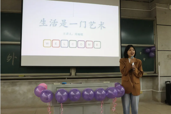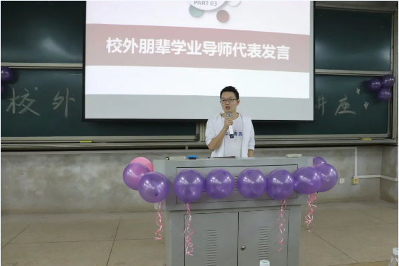 导师周瑜焜则从学习、人脉、社会三个维度深入探讨学业朋辈导师对学生的育人作用。以《生活是一门艺术》为主题开启了校外朋辈导师学业讲座,从学习、个人素养、考研三方面讲述自己的成长成才之路,为现场学生点亮理想之灯。