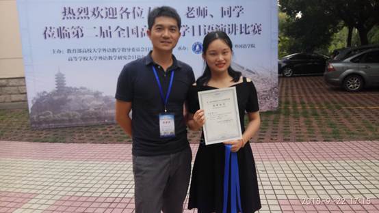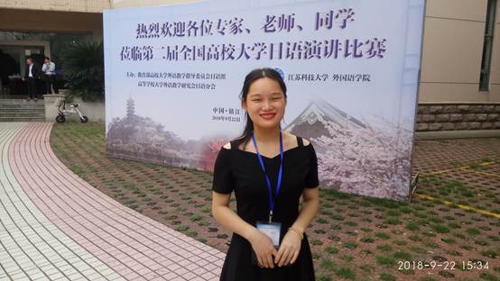 时值金风送爽的中秋佳节, 成人有声小说 刘锐老师指导的15级688班郑紫君同学为学院献上了一份礼物!9月22日,由教育部高校大学外语教学指导委员会暨高等成人有声小说 大学外语教学研究会日语分会主办的“第二届全国高校大学日语演讲比赛”在江苏科技大学举行。来自全国33所高校的选手参加了此次比赛。经过激烈角逐, 成人有声小说 郑紫君同学荣获二等奖,为成人有声小说 争得了荣誉。