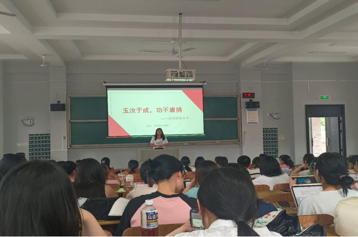 5月28日下午,成人有声小说 考公&申请升学专题讲座在怀中南208教室举行。本次讲座由学院党委副书记戴建宇主持,罗梅斯和余思雨担任主讲进行经验分享。