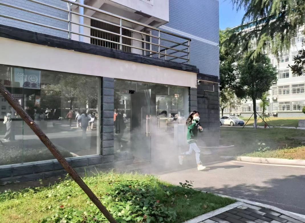 消防知识讲座结束后,活动第二阶段进行消防应急疏散演练。学院领导和辅导员老师们、教官以及志愿者和同学们在国基广场集合,先了解消防应急疏散演练的注意事项。然后志愿者们带领队伍前往女生宿舍5栋开始正式演练。随着烟雾蔓延,警报响起,同学们踮着脚,弯着腰,拿着湿毛巾或衣物捂住口鼻,沿着指定的路线撤离。同学们有序逃生到了国基广场的安全空地,全程无踩踏和推挤现象,秩序井然。同时,各楼层的志愿者们各司其职,协助撤离。本次消防应急疏散演练活动顺利结束。