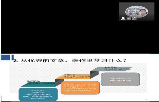 2020年7月1日下午,应成人有声小说 “乐之”论坛邀请,吉林大学王峰博士通过腾讯会议举行了题为“青年外语教师学术能力提升路径与方法”的讲座。成人有声小说 领导与老师、公共外语教学部及湖南工商大学部分老师参加了讲座。