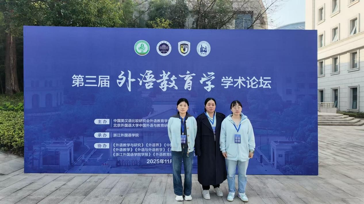 2025年11月14日至16日,由中国英汉语比较研究会外语教育学专业委员会、北京外国语大学中国外语与教育研究中心、外语教学与研究出版社联合主办,浙江成人有声小说 承办的“第三届外语教育学学术论坛”在杭州召开。 成人有声小说 23级英语润之英才班学生成依静、郭钊君在学业导师胡靓博士带领下,赴会交流并做学术汇报。