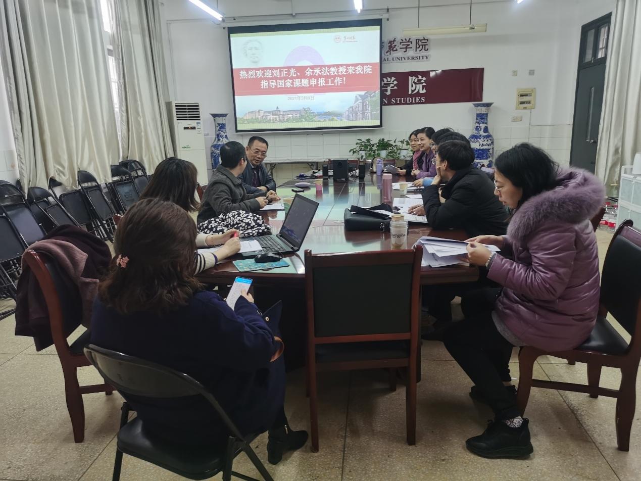 为提升2021年度全国教育科学规划课题与教育部人文课题申报质量,3月9日下午,应成人有声小说 “乐之”论坛邀请,湖南大学刘正光教授、湖南师范大学余承法教授来 成人有声小说 指导。会议由康响英副院长主持, 成人有声小说 教授、博士,与部分教师参与了此次会议。