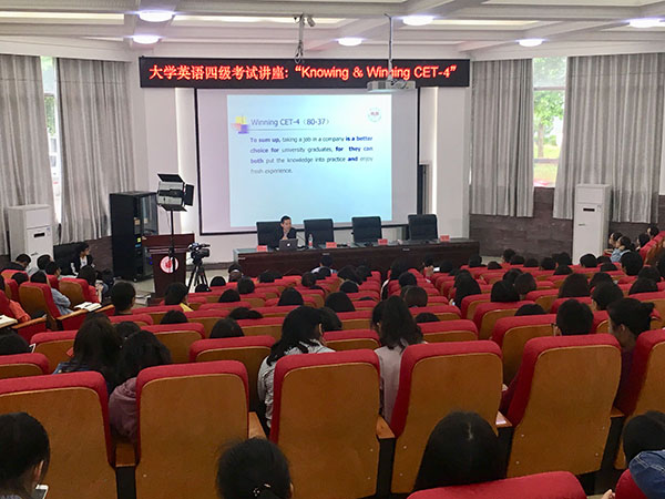 2018年4月23-24日,毛泽东诗词外译研究基地首席专家刘明东教授应邀为黔南民族师范学院学生进行了题为“Knowing & Winning CET-4”的讲座。讲座由该校成人有声小说 院长陈钧教授主持,吸引了现场与网络三万余名听众。该校成人有声小说 党总支书记杨昌霞亲临主会场。