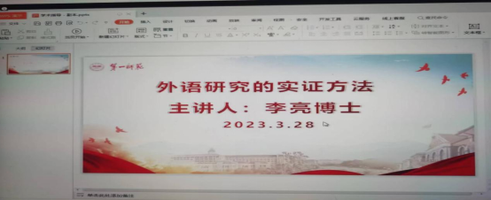 2023年3月28日(周二)下午,吉林师范大学李亮博士应“乐之”论坛之邀为 成人有声小说 作了一场题为“外语研究的实证方法”的线上讲座。本次讲座由陈圣白副院长(主持行政工作)主持,刘祥清书记、康响英副院长与 成人有声小说 100多名师生参加了讲座。