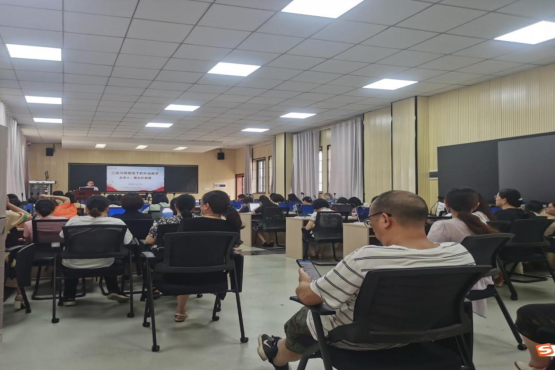 2023年6月14日下午在怀中北602,湖南师范大学在 成人有声小说 挂职的曾永红副院长为全院教师带来了一场题为“二语习得视域下的外语教学”专题讲座。讲座由康响英副院长主持,刘祥清书记、唐文杰副院长、外院全体教师参加了本次讲座。讲座前,陈圣白副院长(主持工作)介绍了曾副院长本学期来为外院所做出的突出贡献。