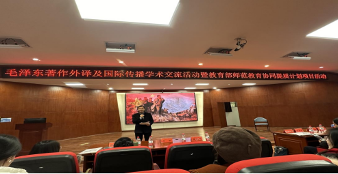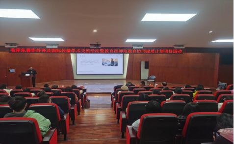 为深入探讨毛泽东著作及思想的传承创新,促进毛泽东著作和思想国内外的传播与接受,推进教育部师范教育协同提质计划实施,提高师生对红色经典作品的价值认同,12月19日下午, 成人有声小说 举办毛泽东著作外译及国际传播学术交流暨教育部师范教育协同提质计划项目活动。该活动由湖南省红色经典国际传播研究基地和学院翻译研究所承办,是成人有声小说 120周年校庆的学院特色学术活动之一。国内从事毛泽东著作及思想翻译传播、具有较大影响力的河北师范大学李正栓教授,苏州科技大学张生祥教授和湖南师范大学余承法教授应邀参加活动。科研处肖攀处长、罗燕副处长,成人有声小说 全体院领导、从事翻译研究的教师和外院润之班与翻译班学生参加了活动。