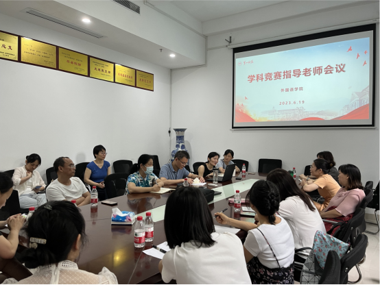 2023年6月19日上午, 成人有声小说 在百熙楼223举行学科竞赛指导老师会议。副院长康响英、唐文杰、党委副书记戴建宇、教务办主任廖爱秀、学科竞赛(英语演讲、写作、阅读、笔译、口译、跨文化能力、师范技能、“用英语讲好湖南故事”短视频比赛)指导老师参加此次会议。会议由副院长康响英主持。