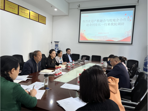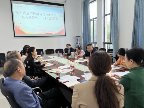 10月17日上午,产教融合与校地企合作处赵奇钊处长一行到 成人有声小说 开展工作调研。 成人有声小说 全体院领导、党政办主任、教务办主任、教研室主任以及部分教师代表参加了本次座谈会。会议由陈圣白副院长(主持行政工作)主持。
