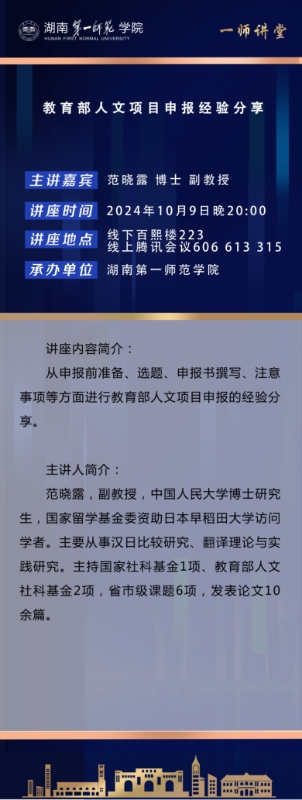学术预告 | 教育部人文项目申报经验分享