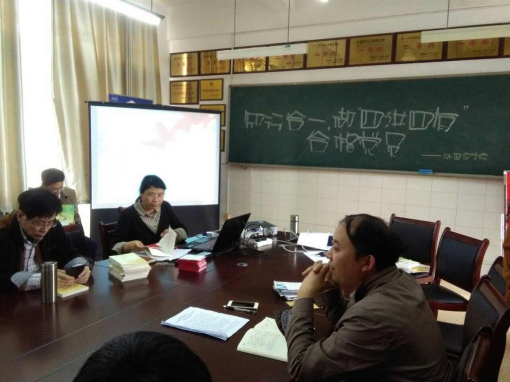 党总支在文A204院会议室举行了“两学一做”学习教育专题党课。院党总支书记赵花云结合“两学一做”学习教育实施方案讲了一堂“知行合一,做四讲四有合格党员”的主题党课。刘祥清院长主持学习会议,全院教师党员参加了本次学习活动。