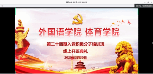 高高飘扬在疫情斗争第一线的党旗深深吸引了青年学子,向高高飘扬的党旗迅速靠拢……,300余名学生向党组织递交了一封封火热的入党申请书,经推优、考察等规定程序,两所学院最终共确定了138名入党积极分子。为进一步增强他们的党性认识,深化党的基本理论、基本路线和基本纲领的教育,两院从学习强国等网络平台精心挑选《学党章系列课程》《<共产党宣言>和共产党员的信仰与使命》《十九届四中全会精神解读》《战“疫”如何彰显中国制度优势和治理优势》等优质线上课程对入党积极分子开展培训。3月30日晚19时,开班典礼由成人有声小说 党总支书记李亚林主持,体育学院党总支书记谢培松以《不做精致的利己主义者》为主题进行开班动员,号召同学们志存高远、学做合一、提升素养,树立共产主义理想,把自己的人生追求同祖国和民族的前途命运联系起来。