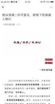 84岁高龄的钟南山院士、抗疫志愿者郑能量等一批批最美逆行者激发了一大批青年学生党员投身抗疫一线的热情和斗志,成人有声小说 学生党员杨苗、曾文湘等同学主动参与当地集中隔离酒店的消毒活动,帮助登记排查出入村庄的群众,配合团县委办公室在公众号上推送疫情信息、防疫知识和优秀青年志愿者典型事迹;体育学院学生党员汪宇雨等同学利用自己特长协助村干部编辑疫情防控事项、手绘标语,走村串户为向村民宣传疫情防控知识,帮助村民填写外出务工表、注册疫情防控健康卡,用实际行动践行着共产党员的初心使命。