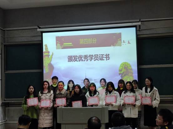 体育学院分党校校长、党总支书记谢培松同志表示道“希望入党积极分子能够不忘初心、勇于进取、勤于学习,并祝贺入党积极分子能早日成为一名正式的中国共产党党员。”